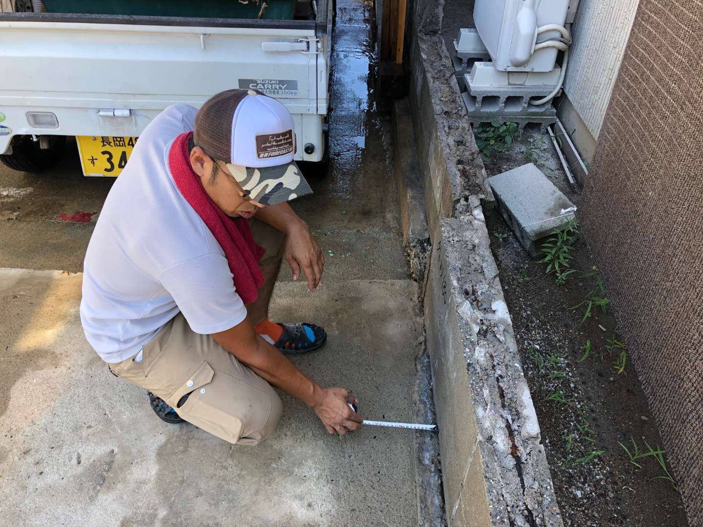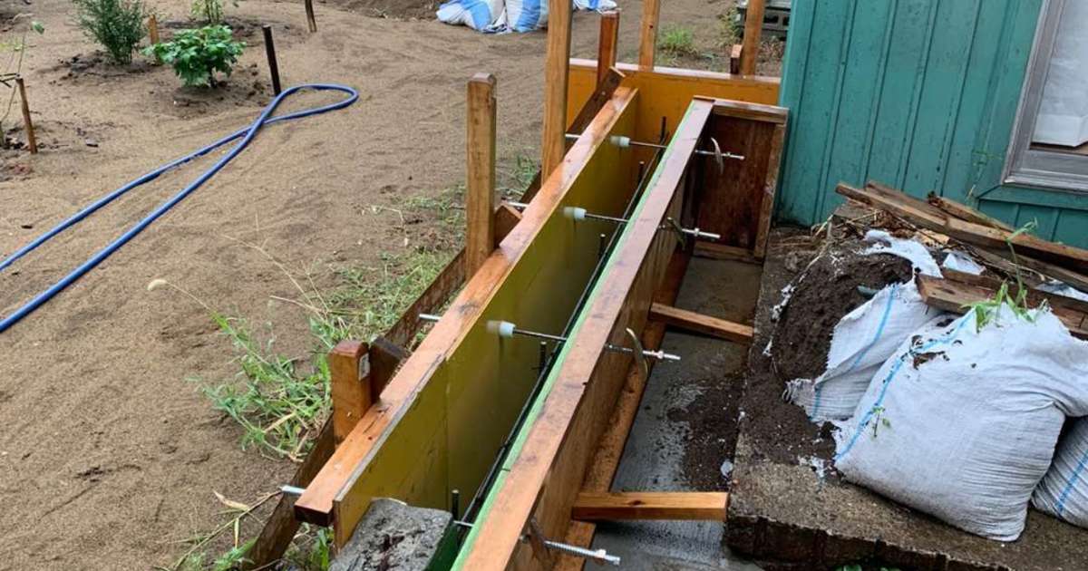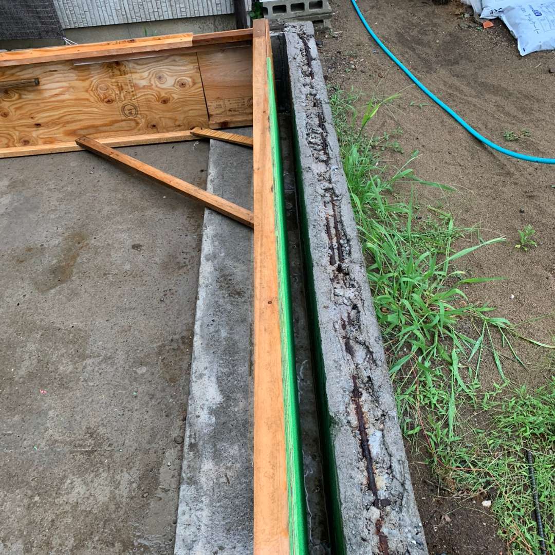 既存コンクリートブロックに型枠をおこして擁壁作成中!